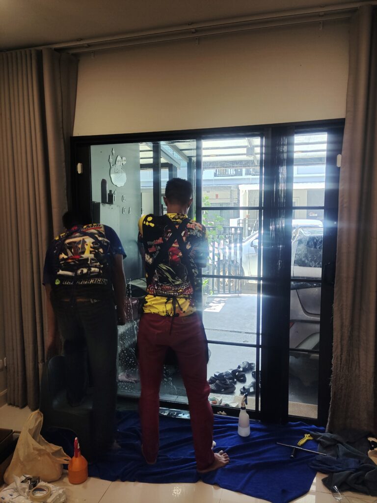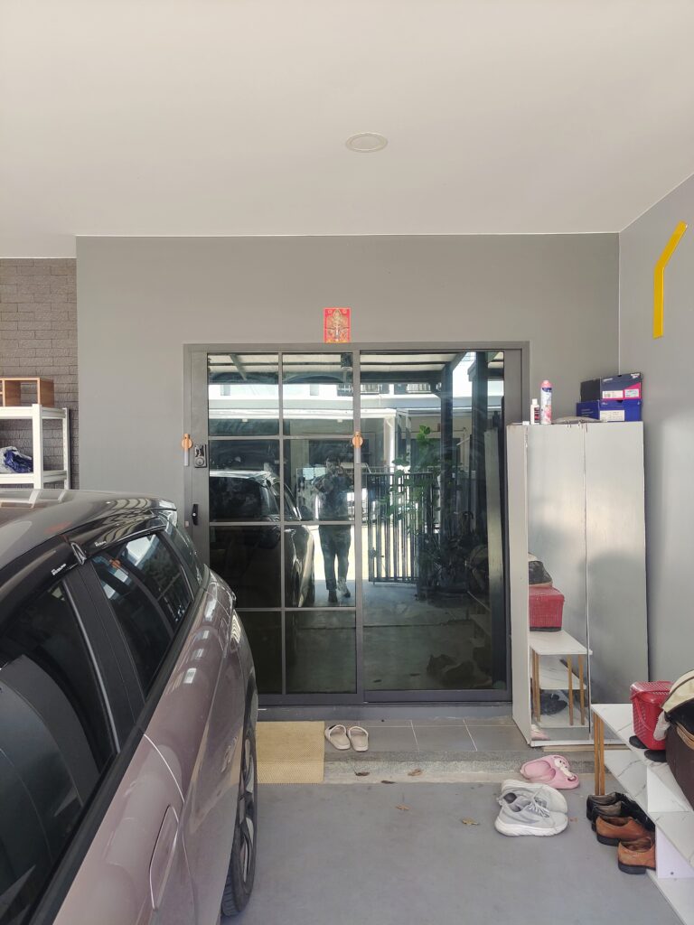 ประตูหน้าบ้านเลือกเป็น 60% จะได้ความเป็นส่วนตัว และมองออกไปด้านนอกยังใส และชัดเจนอยู่